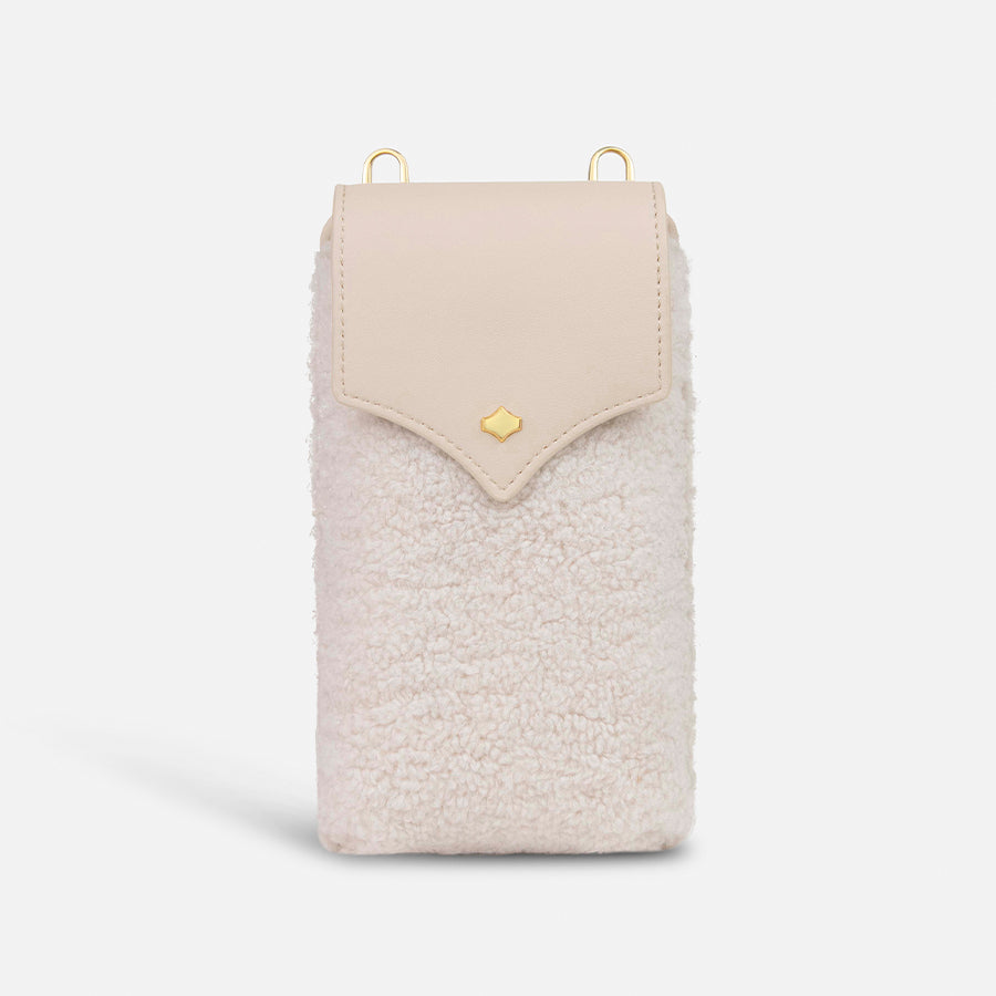 Strap Set No. 47 - Creme Strap Clip + Shearling Phone Pouch + Creme Mini Pocket + Creme PhoneStrap | Nylongurt + Horse SunCover | Brillenetui Horse