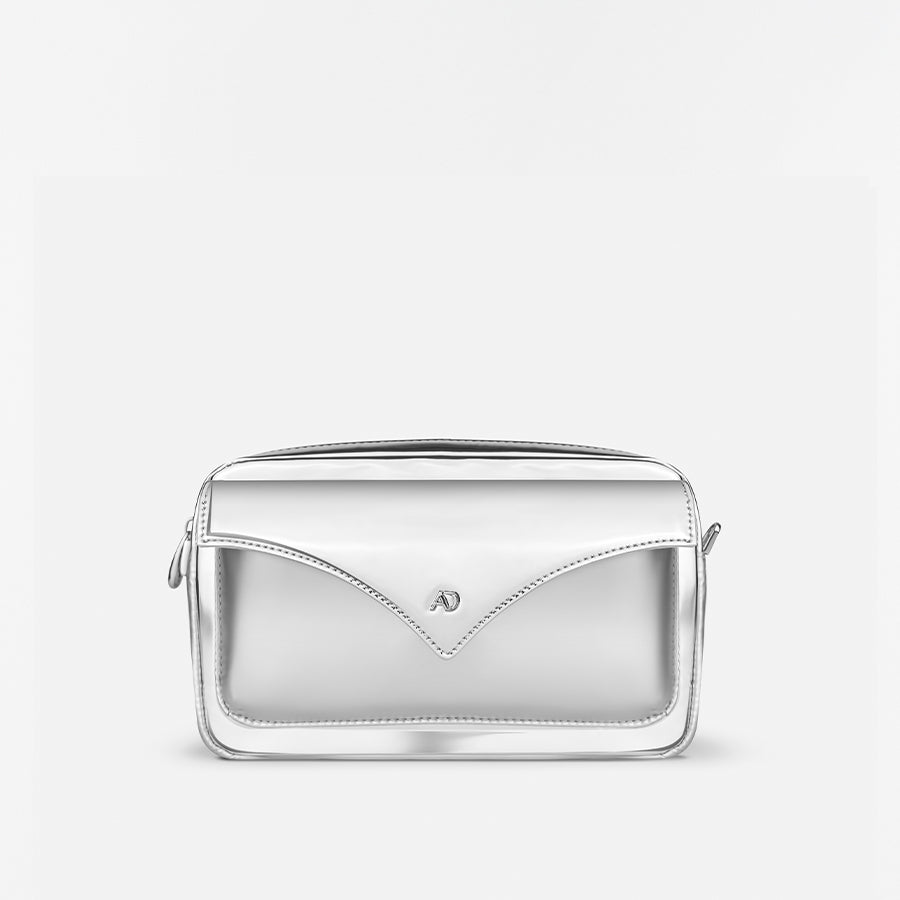 Silver Zip Pocket Puffer + Mirror SunCover | Brillenetui + Silver Strap Clip + Silver PufferStrap | Nylongurt + Silver Box Phone Bag - Silver