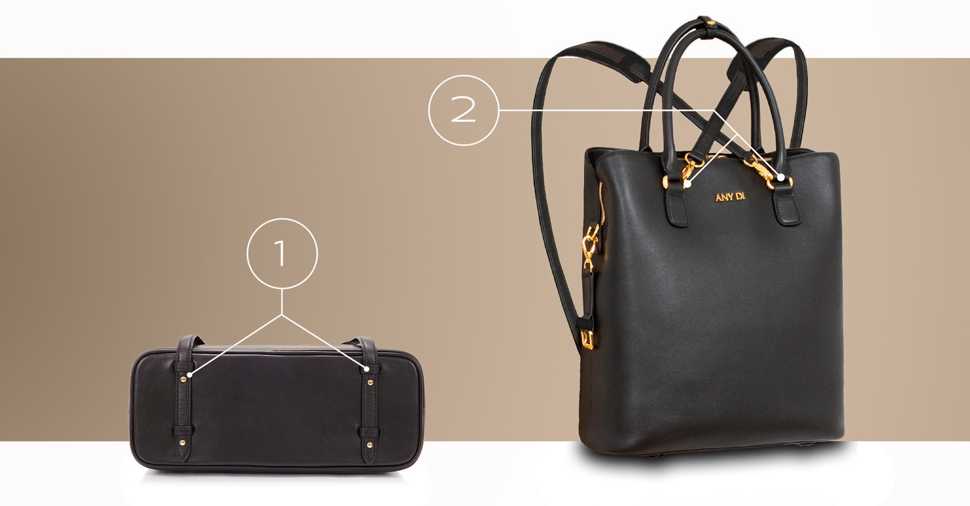 Das designpatentierte Bag-Strap-System ermöglicht grenzenlose Tragemöglichkeiten. Damit revolutioniert ANY DI den globalen Modemarkt.