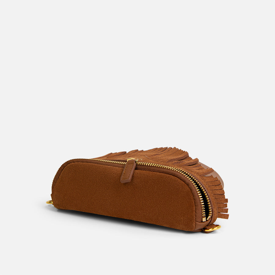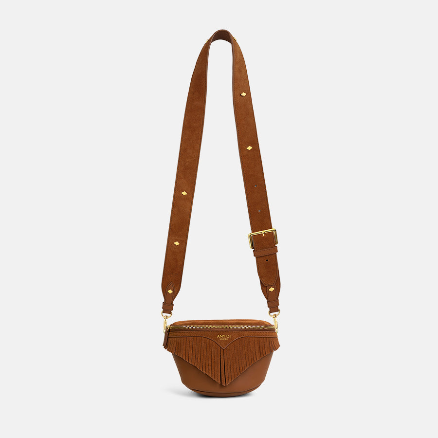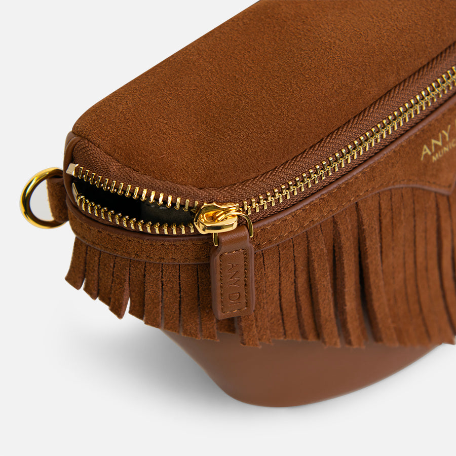 Die neue Fanny Pack Fringes Cognac überzeugt durch ihr modernes Design. Die Veloursfransen verleihen der Tasche einen besonderen, coolen Akzent. Ob in der Stadt oder draußen in der Natur – sie ist ein praktisches Accessoire und gleichzeitig ein echter Hingucker.